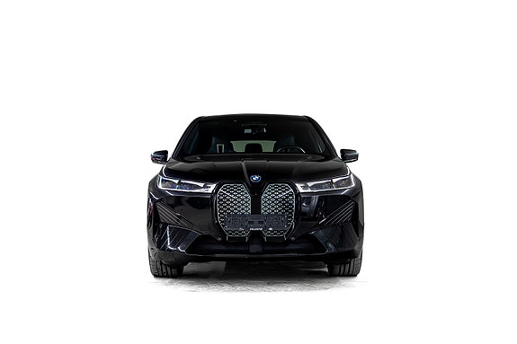 Dette er en gjennomført spesifisert BMW iX i riktig fargekombinasjon sort mot sort, med Suite Amido og 22 Aero-felger som gir bilen en tydelig premiumprofil.