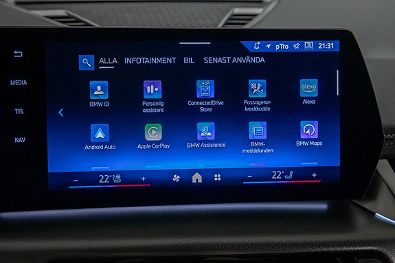 Trådløs mobil¬lading og BMW Live Cockpit Professional med stor buet display