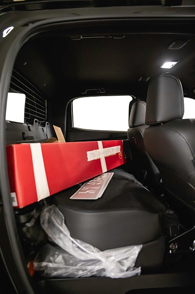 Førermiljøet er topp moderne og solid med sort skinninteriør, sportsseter, multifunksjonsratt og digitalt instrumentdisplay. Hver detalj vitner om gjennomført kvalitet og komfort, enten du er på byggeplassen eller i fjellet.