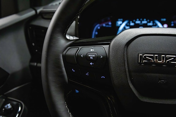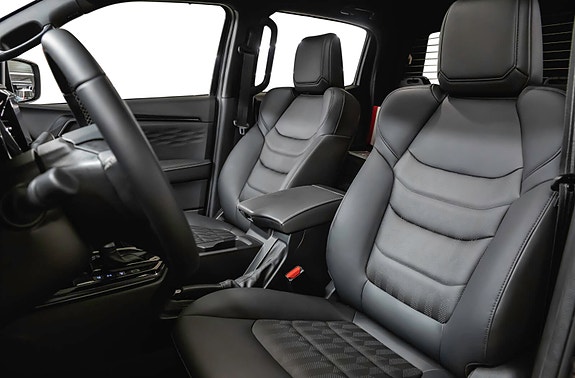 Førermiljøet er topp moderne og solid med sort skinninteriør, sportsseter, multifunksjonsratt og digitalt instrumentdisplay. Hver detalj vitner om gjennomført kvalitet og komfort, enten du er på byggeplassen eller i fjellet.