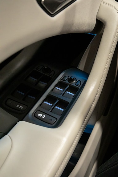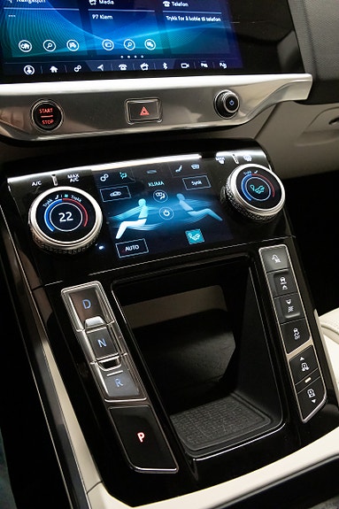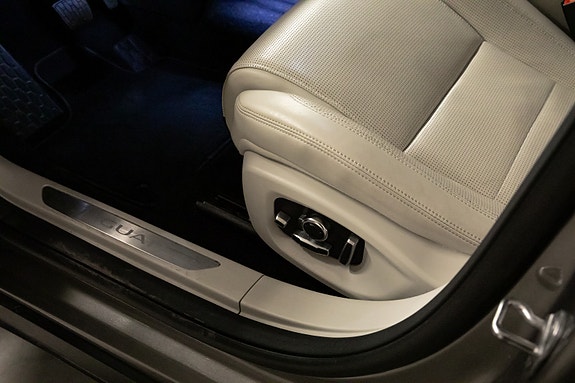 Interiøret oser av raffinement, med lyst taktrekk (Light Oyster Morzine), Gloss Black interiørlister og luksuriøse detaljer som ambient belysning, skinntrukket midtkonsoll og detaljer i satin chrome.