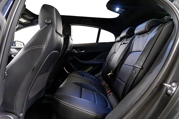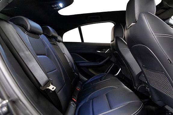 Det faste panorama glasstaket, privacy glass og sort Ebony taktrekk gir kupeen et eksklusivt og luftig preg, mens utvidet skinnpakke og Gloss Black interiørlister understreker bilens premiumfølelse.