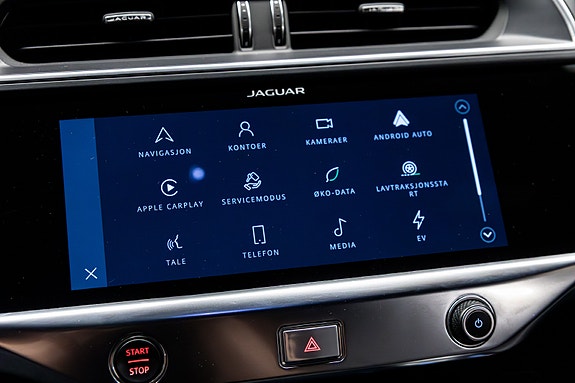 I-PACE er spekket med moderne teknologi og avanserte førerassistentsystemer. Adaptive Cruise Control med Stop & Go, Blind Spot Assist, Clear Exit Detection, Lane Keep Assist, Traffic Sign Recognition med adaptiv fartsbegrenser og Reverse Traffic Detection med autobrems gir trygg og avslappet kjøring.