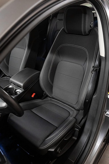 Selges: En svært velholdt og godt utstyrt Jaguar I-PACE EV320 AWD S i den elegante fargen Eiger Grey Metallic med sorte Luxtec sportseter og kontrastsøm i Light Oyster. Denne bilen kombinerer sportslig design, komfort i luksusklassen og avansert el-teknologi.