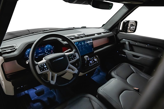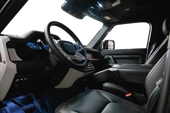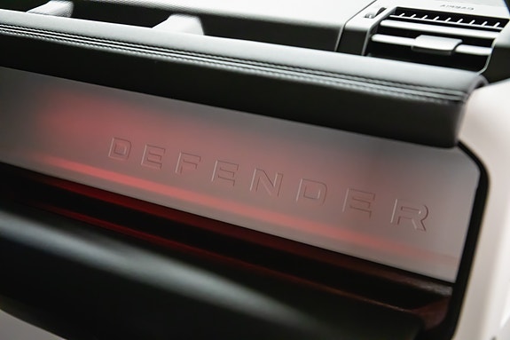 Denne Defenderen kombinerer barsk nyttebil med premium komfort og moderne teknologi. Med kraftig 3.0 liter 6-sylindret dieselmotor (250 hk), 8-trinns automat og permanent firehjulstrekk, leverer den både trekkraft og kjøreglede uansett underlag.