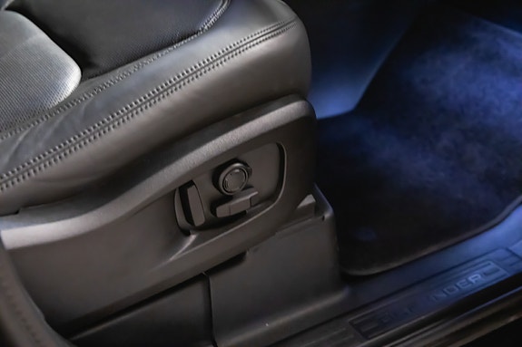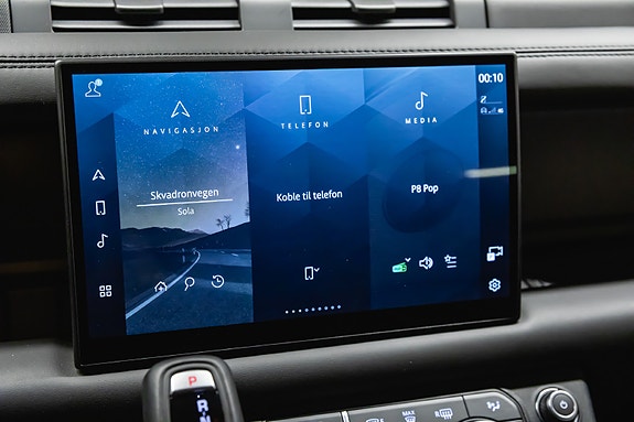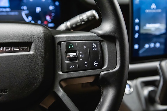 Santorini Black metallic sammen med Gloss Black detaljer, 22 hjul og Extended Black Pack gir bilen et uttrykk som umiddelbart signaliserer autoritet. Innvendig møter du perforerte Windsor skinnseter, førerorientert cockpit og en robust, premium finish som kun Land Rover leverer.