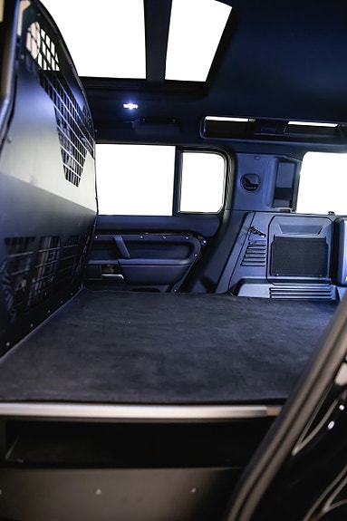 Dette er en Defender i toppkonfigurasjon, nøye satt sammen for å gi maksimal komfort, styrke og tilstedeværelse på veien. En varebil som både representerer bedriften og løser oppgavene med særpreget luksus og kvalitet som kjennetegner Land Rover.