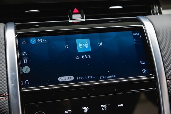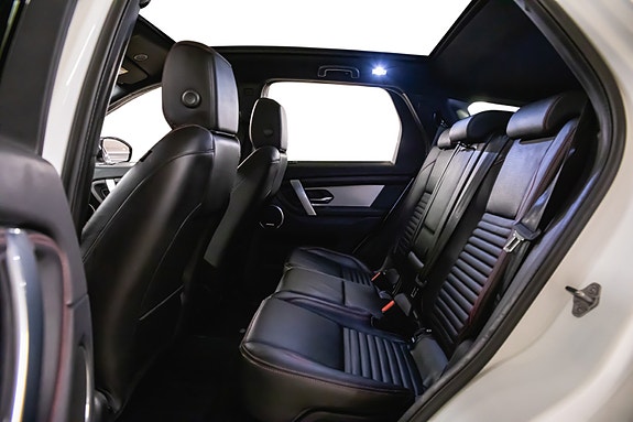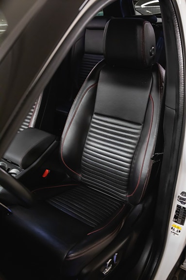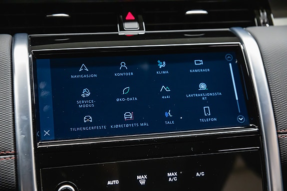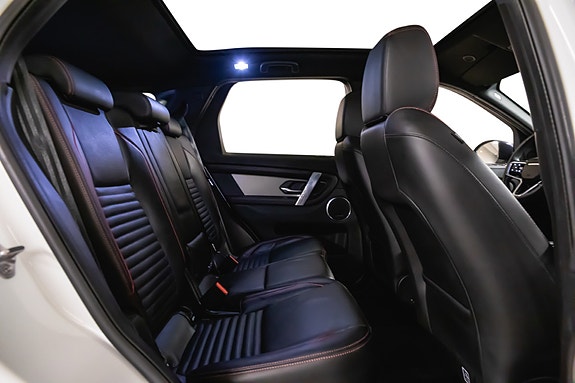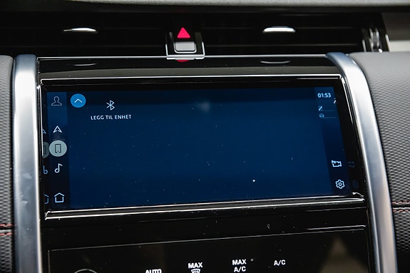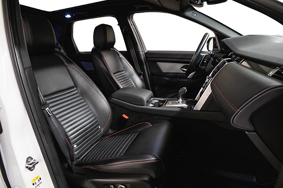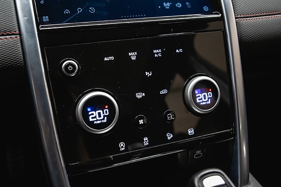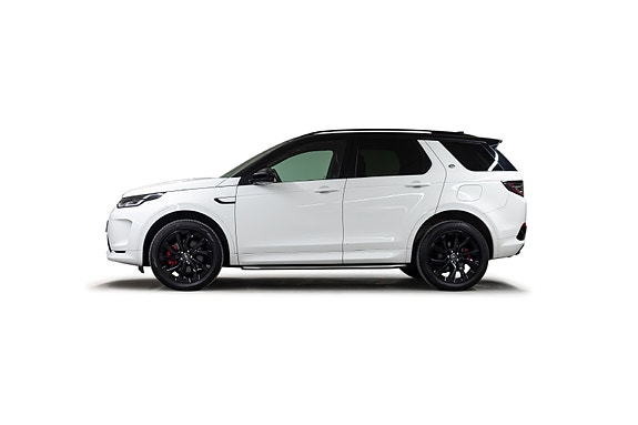 Denne Discovery Sport R-Dynamic SE Plug-in Hybrid kombinerer kraft, komfort, moderne teknologi og et tøft eksteriør. Fuji White med sort tak og svarte detaljer løfter designet ytterligere, og interiøret med perforert skinn og rød kontrastsøm gir en eksklusiv og sporty atmosfære.