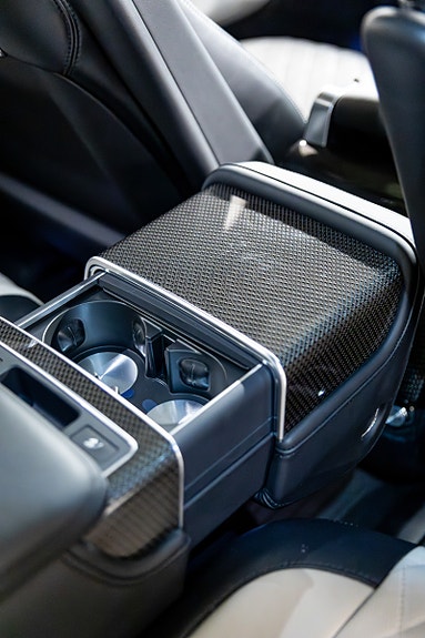 Kupéen er utført i Cirrus & sorte Quilted Diamond perforerte skinnseter, kombinert med Alcantara / semsket taktrekk og eksklusive karbonfiber-detaljer. Komfortnivået er i særklasse: