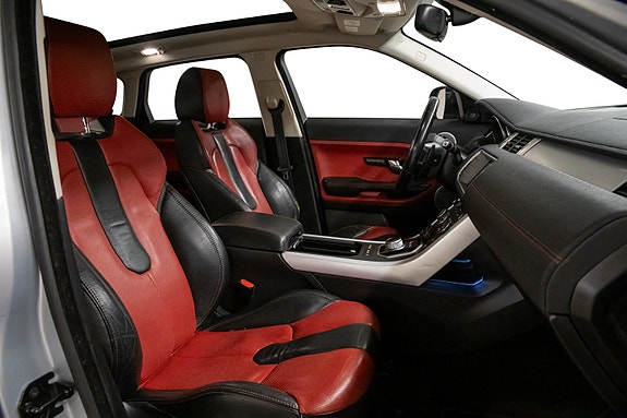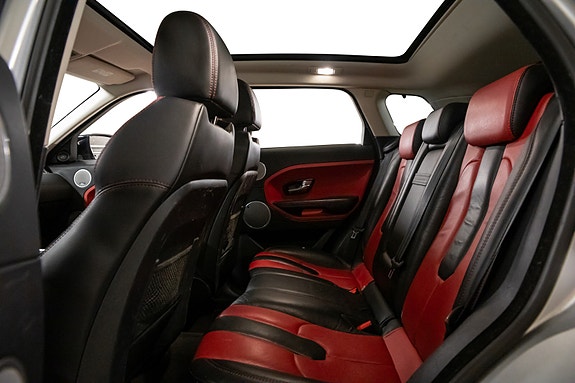 Her får du en SUV som skiller seg ut fra mengden Evoque er urban, selvsikker og eksklusiv. Denne 2012-modellen i Indus Silver metallic med kontrastlakkert sort tak og Mars Red/Svart skinninteriør, kombinerer ikonisk design med dynamisk kjøreglede og høy komfort.