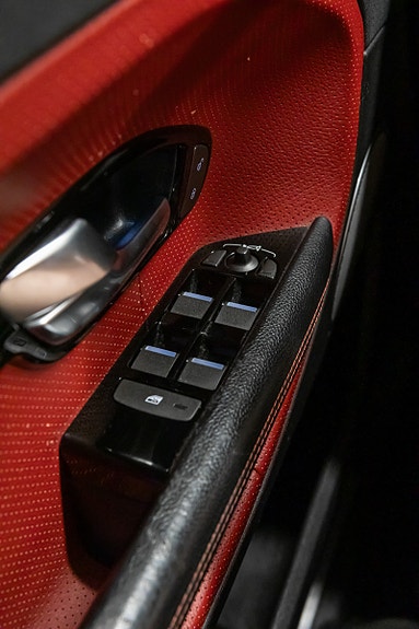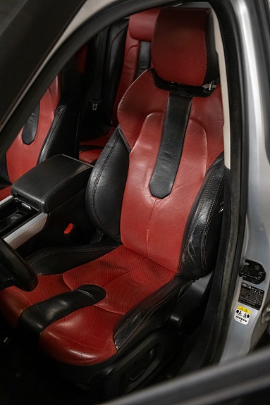 Oppvarmede perforerte skinnseter i Mars Red / Sort