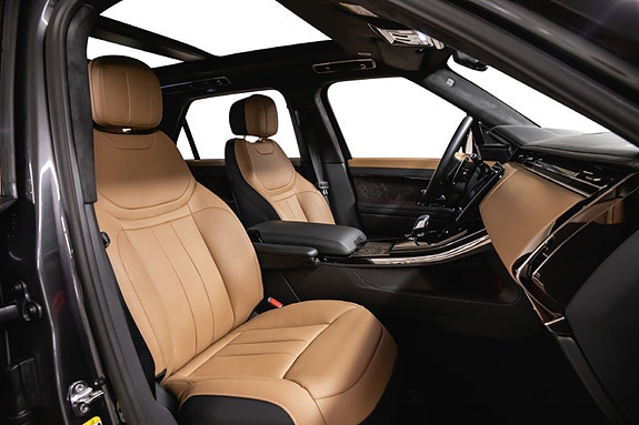 Vi har gleden av å tilby en av de mest komplette og ettertraktede versjonene av nye Range Rover Sport en P550e Autobiography i eksklusiv Carpathian Grey Premium Metallic kombinert med Caraway Semi-Aniline perforert skinninteriør. En konfigurasjon som utstråler eleganse, moderne luksus og sportslig autoritet.