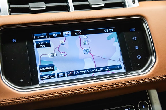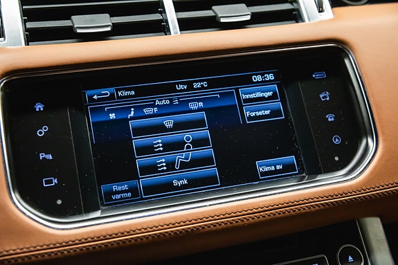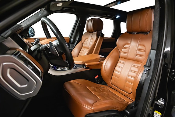 En virkelig fullblods Range Rover Sport råskap kombinert med luksus og komfort. Denne bilen leveres i klassiske Santorini Black metallic med eksklusive Tan Windsor skinnseter, og under panseret finner du en kraftig 3.0 SDV6 dieselmotor med hele 306 hk og 700 Nm dreiemoment sterk som et lokomotiv .