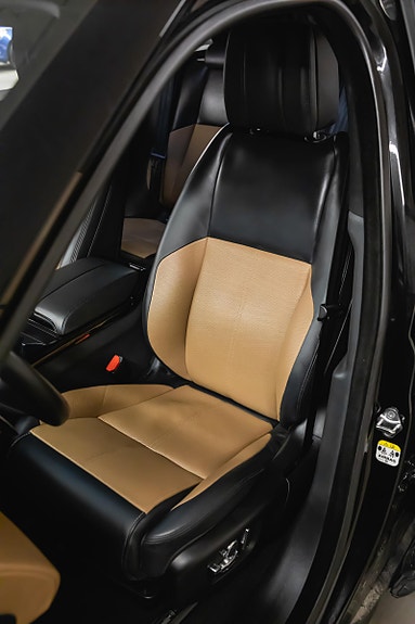Fargen Santorini Black metallic gir bilen et sofistikert preg, mens det luksuriøse interiøret med Caraway skinnseter sørger for eksklusiv komfort på alle kjøreturer.