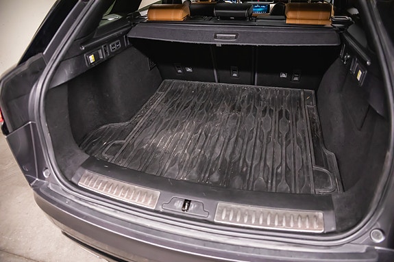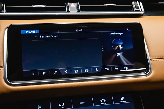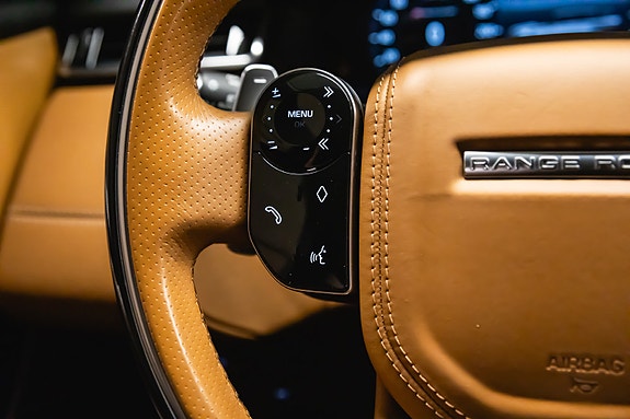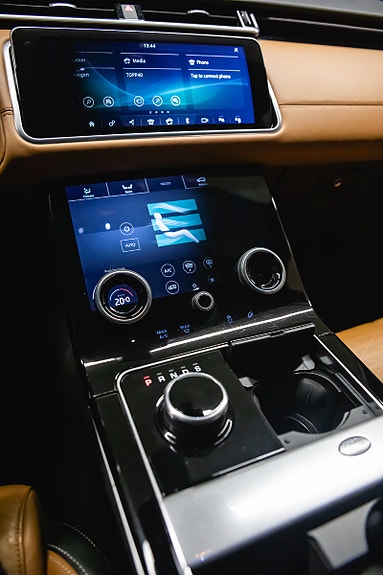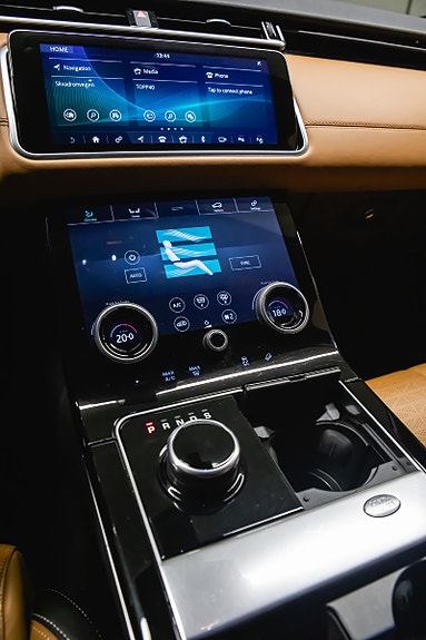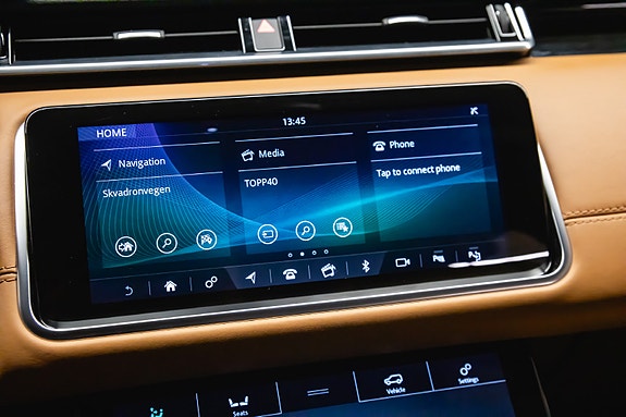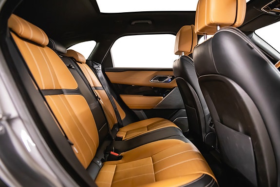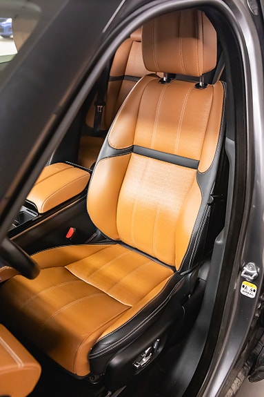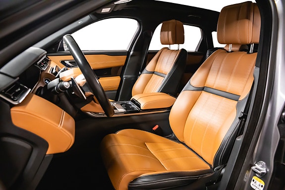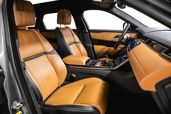 Bilen leveres i Corris Grey metallic med sort kontrasttak og R-Dynamic Black Pack som setter prikken over i-en. Innvendig finner du et elegant interiør i Siena Tan & sorte perforerte Windsor skinnseter, 20-veis elektrisk justerbare forseter med varme, kjøling, massasje og memory. Baksetene er selvsagt også oppvarmet.