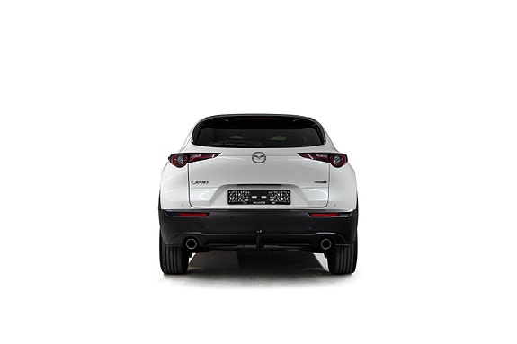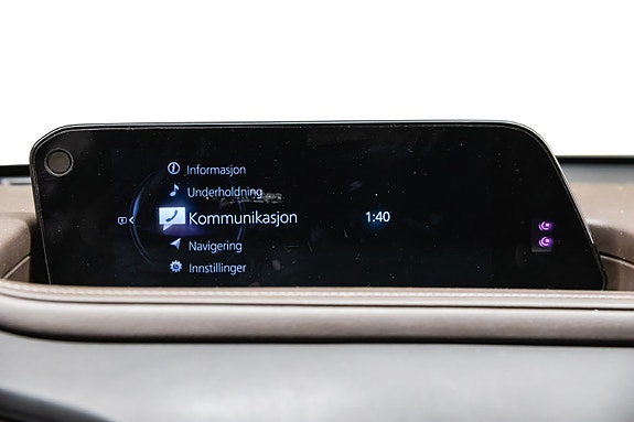 Dette er en komplett utstyrt Mazda CX-30 Automat 180 hk i en av de mest ettertraktede kombinasjonene: Hvit eksteriør, Mokka skinn, sorte felger, Bose, memory-stol, navi, ryggekamera og hengerfeste.