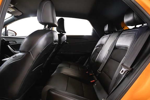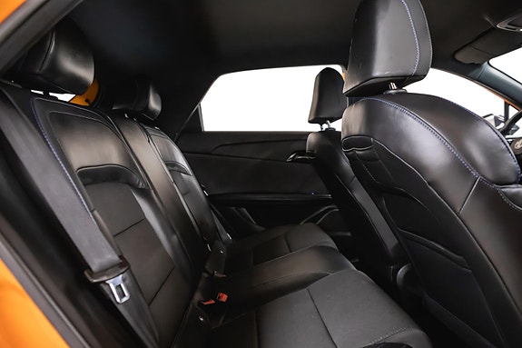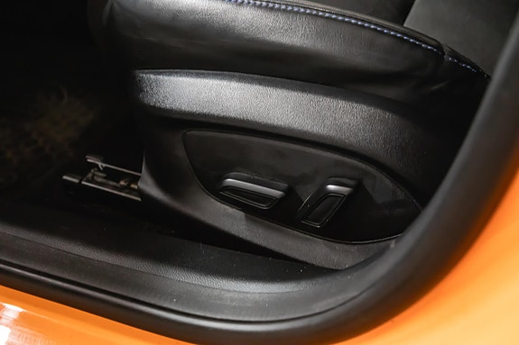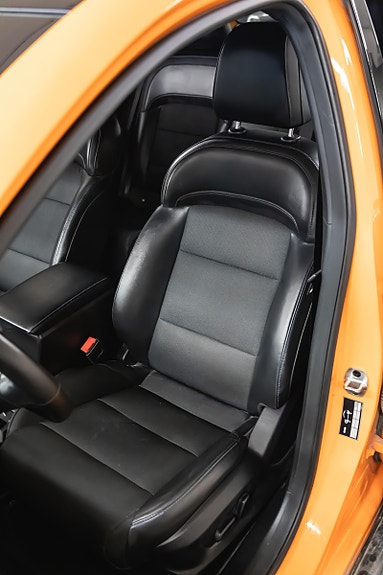 Den spreke oransje fargen gir bilen et unikt uttrykk som virkelig skiller seg ut i trafikken, mens det sorte delskinn-interiøret gir en sportslig og moderne atmosfære inne i kupeen.