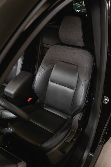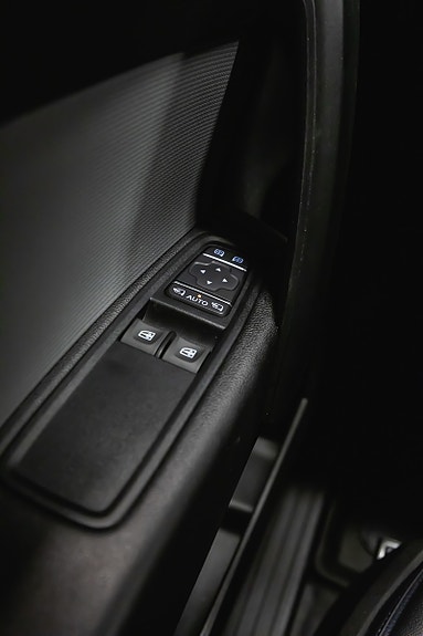 Bilen fremstår i sort metallic, med grå slitesterke stoffseter, og er utstyrt med kraftige Lumen ekstralys montert i front perfekt for norske forhold og mørke arbeidsdager.