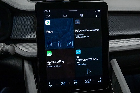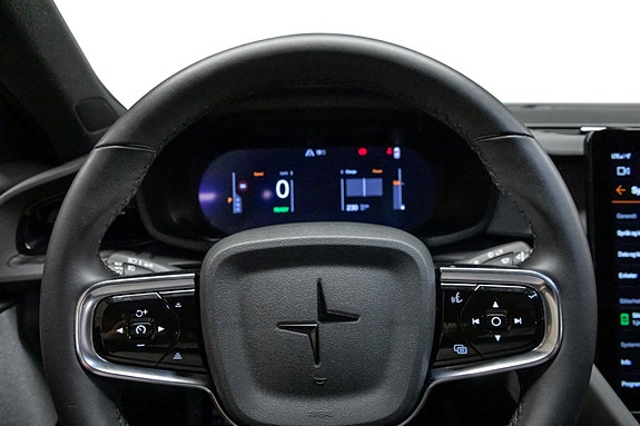 En stilig, moderne og fullspekket Polestar 2 her får du kombinasjonen av lang rekkevidde, solid firehjulstrekk og et design som skiller seg ut i Midnight Blue Metallic. Interiøret er like lekkert som det er funksjonelt, med Embossed Textile Charcoal-seter og elegante 3D Etched dekorpaneler som gir kupeen en moderne og skandinavisk følelse.