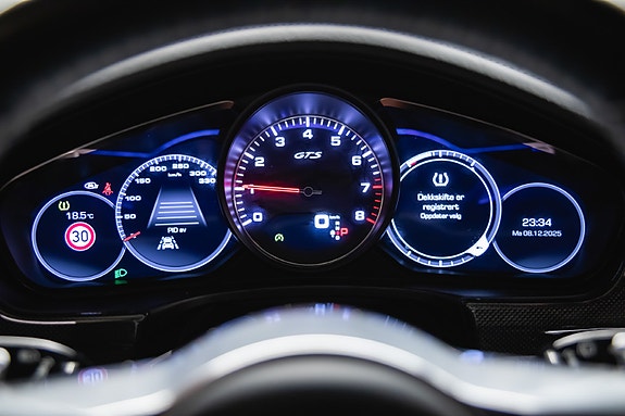 Bilen er levert ny som GTS (97CDG1), produsert 13.12.2018, byggår 2019, og er svært pent utstyrt med blant annet Burmester High-End lydsystem, Sport Chrono Plus, 21 Panamera Turbo felger, Head-Up Display, 4-soners klima, Porsche InnoDrive / ACC High, seteventilasjon, 18-veis Sportsseter, Black Design-pakke, karbon interiør, sort taktrekk i Alcantara, ionisator, mørke ruter, elektrisk tilhengerfeste og mye mer.