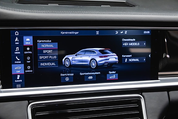 Dette er en Panamera Sport Turismo GTS som er satt opp på helt riktig måte: masse karbon, Burmester, Sport Chrono, luftfjæring, PDCC, Head-Up, 4-soners klima, klimaseter, panoramatak og sportseksos. Kjøreglede og komfort på øverste hylle kombinert med praktisk bruk og rå Porsche-DNA.