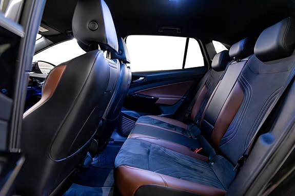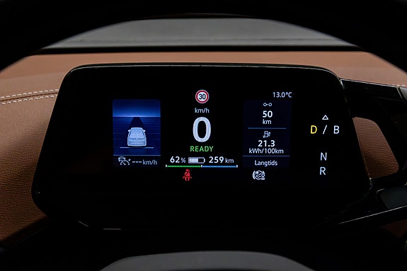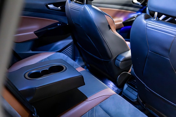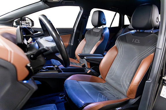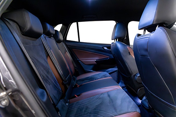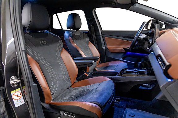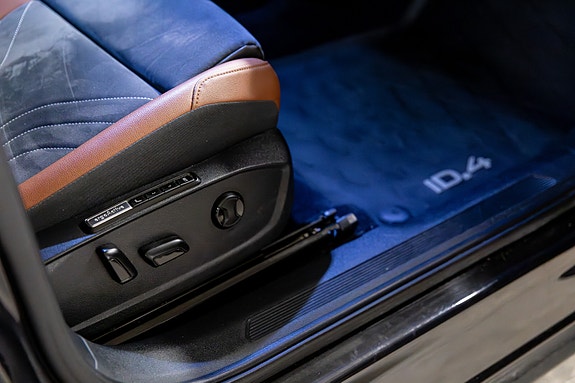 Her har du en svært gjennomført og riktig spesifisert Volkswagen ID.4 Pro en romslig, stillegående og moderne helelektrisk SUV som passer like godt til familie som pendling og langtur. Bilen er levert i grå metallic, kombinert med et lekkert og sjeldent interiør i grå & konjakkbrune Alcantara- og skinnseter som gir et eksklusivt og varmt preg i kupeen.