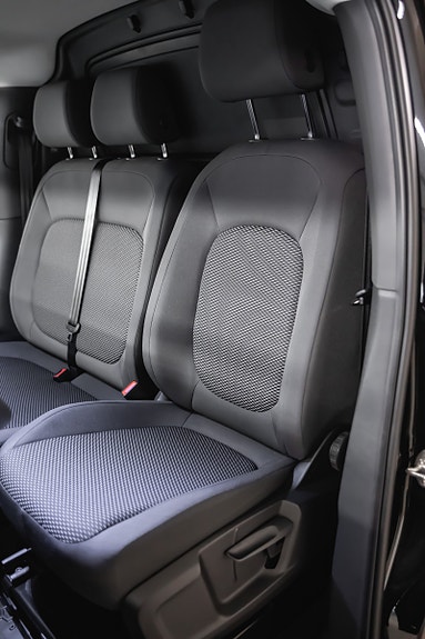 Denne bilen leveres i Sort eksteriør med grå slitesterke stoffseter, praktisk skillevegg og et stort, solid varerom med tre-bunn. Den kraftige elektriske drivlinjen på 210 kW / 560 Nm gir silkemyk respons og imponerende arbeidskapasitet også med last.
