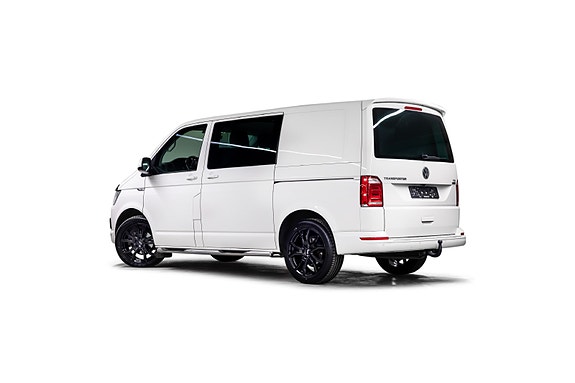 Her får du en Transporter med både stil og substans ferdig oppgradert med sorte detaljer, tøff styling og firehjulstrekk som tar deg frem uansett vær og føre.