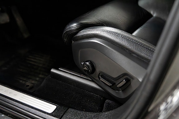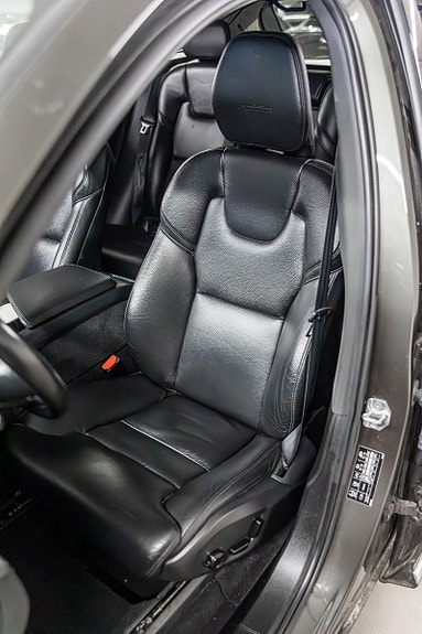 Bilen er lakkert i lekre Pine Grey metallic, kombinert med sorte skinnseter, og fremstår som både tidløs og eksklusiv.