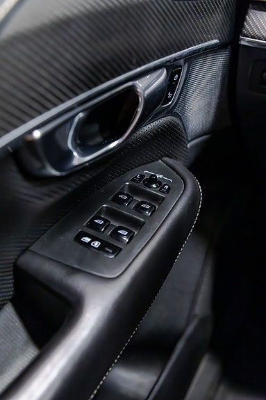 Mørkt taktrekk og R-Design interiørdetaljer i aluminium/karbonfiber